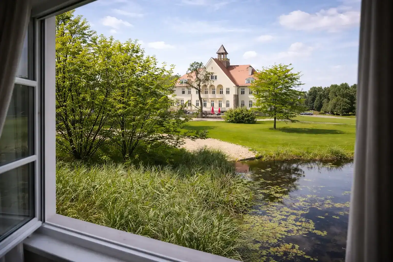 Spaziergänge im Schlosspark • leichtes Mittagessen • Kaffee & Kuchen auf der Terrasse (witterungsabhängig im Schloss) • optional Golf-Schnupperkurs • 3-Gang-Abendessen • Gemeinschaftsabend